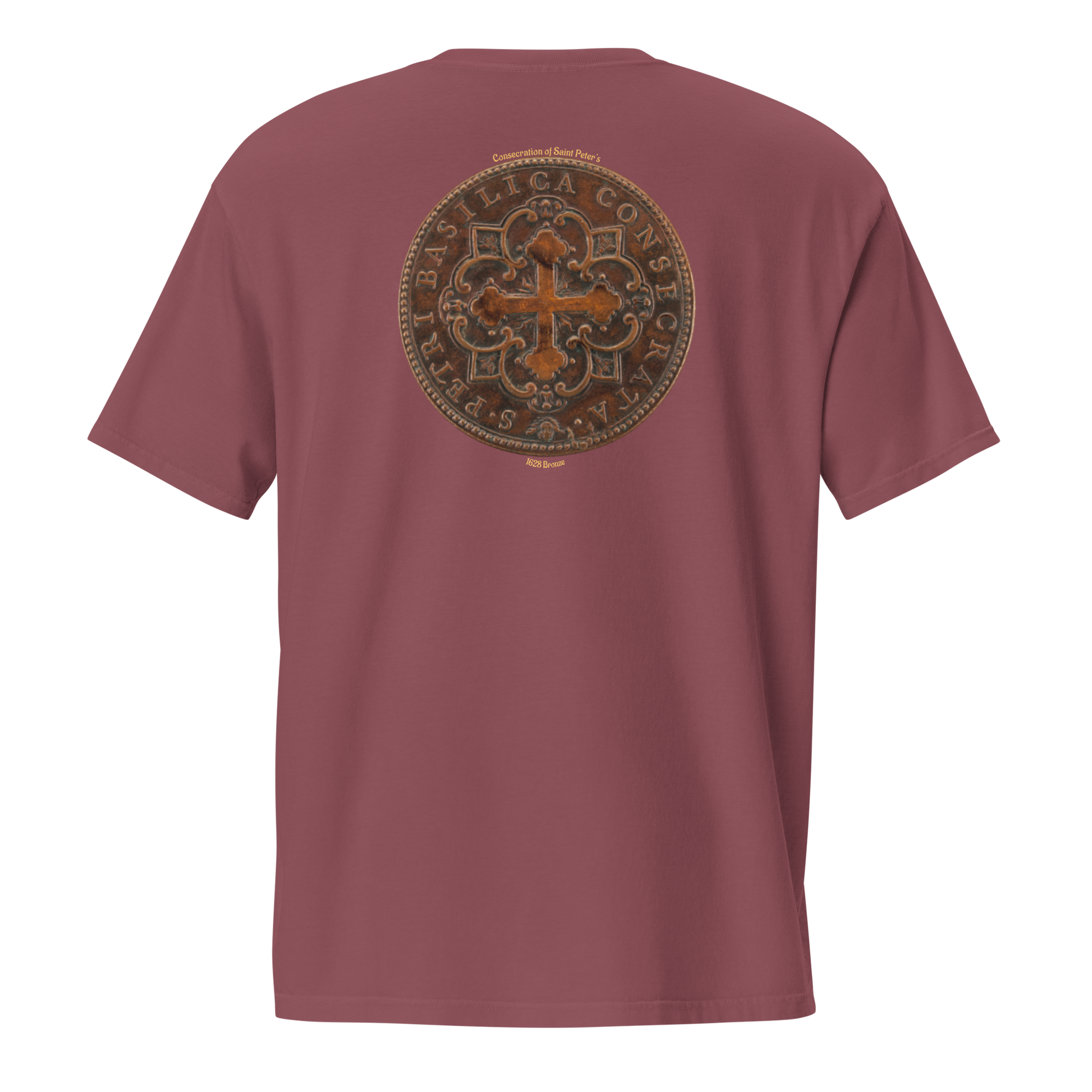 Embrace the spirit of the late Renaissance to early Baroque era with this Men's Pocket T-Shirt, featuring the exquisite "Consecration of Saint Peter's," a Bronze coin that was hand made in the year 1628.