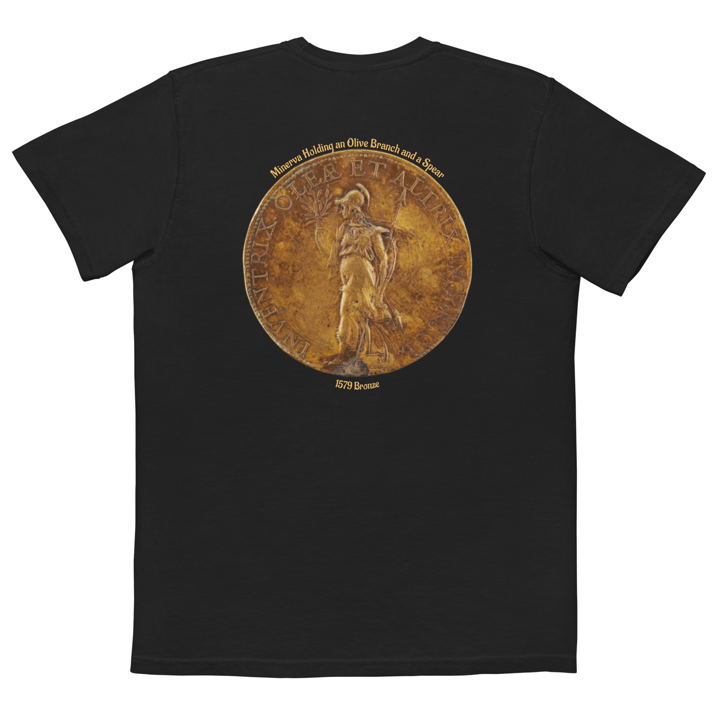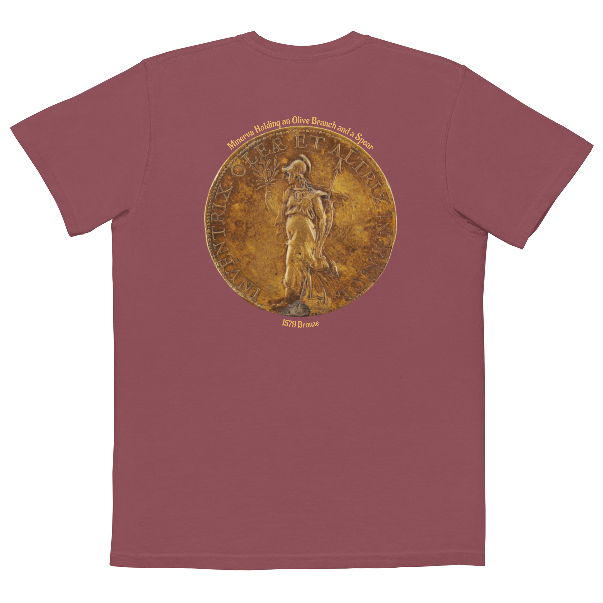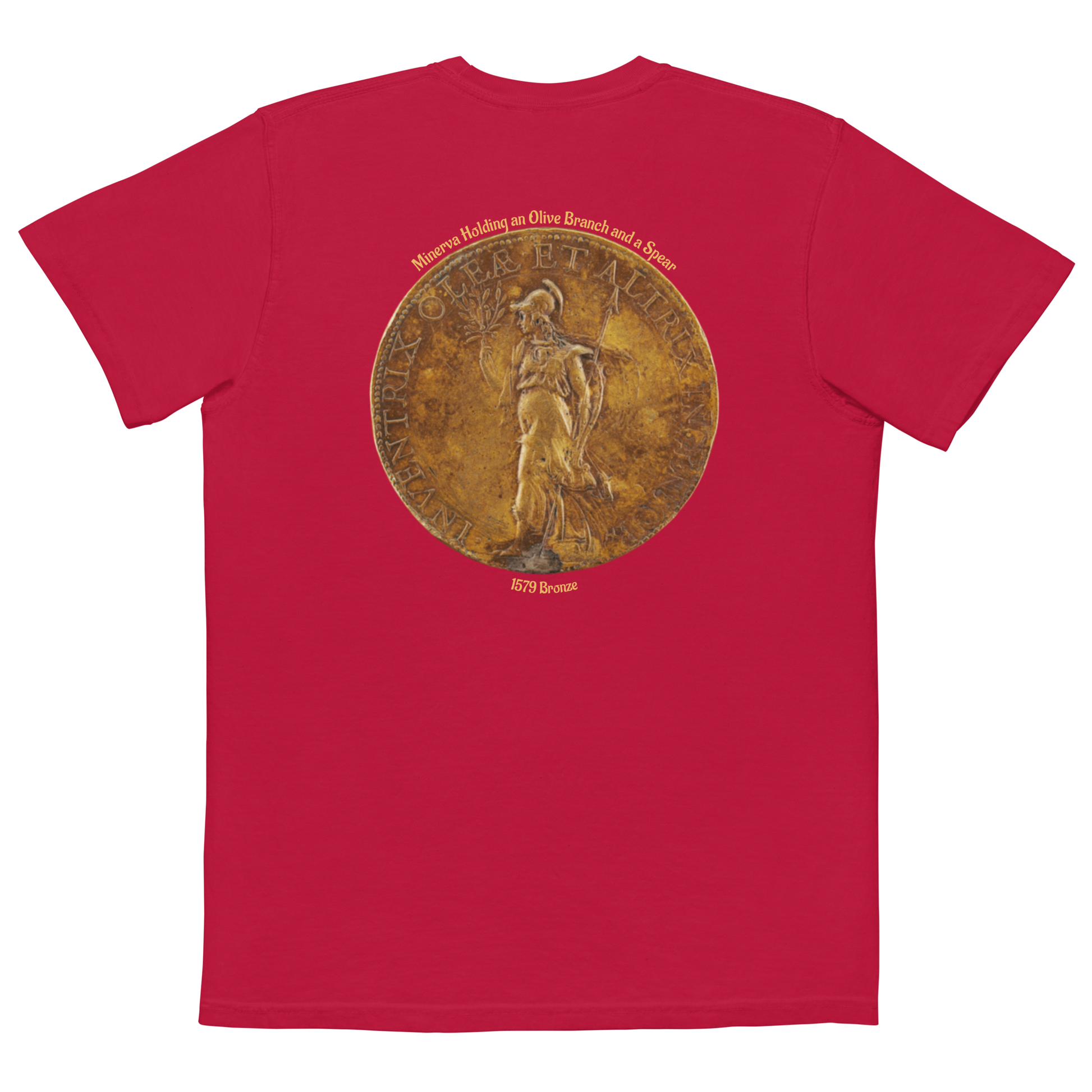 MEN'S POCKET T-SHIRT - Minerva Holding an Olive Branch and a Spear, 1579 Bronze