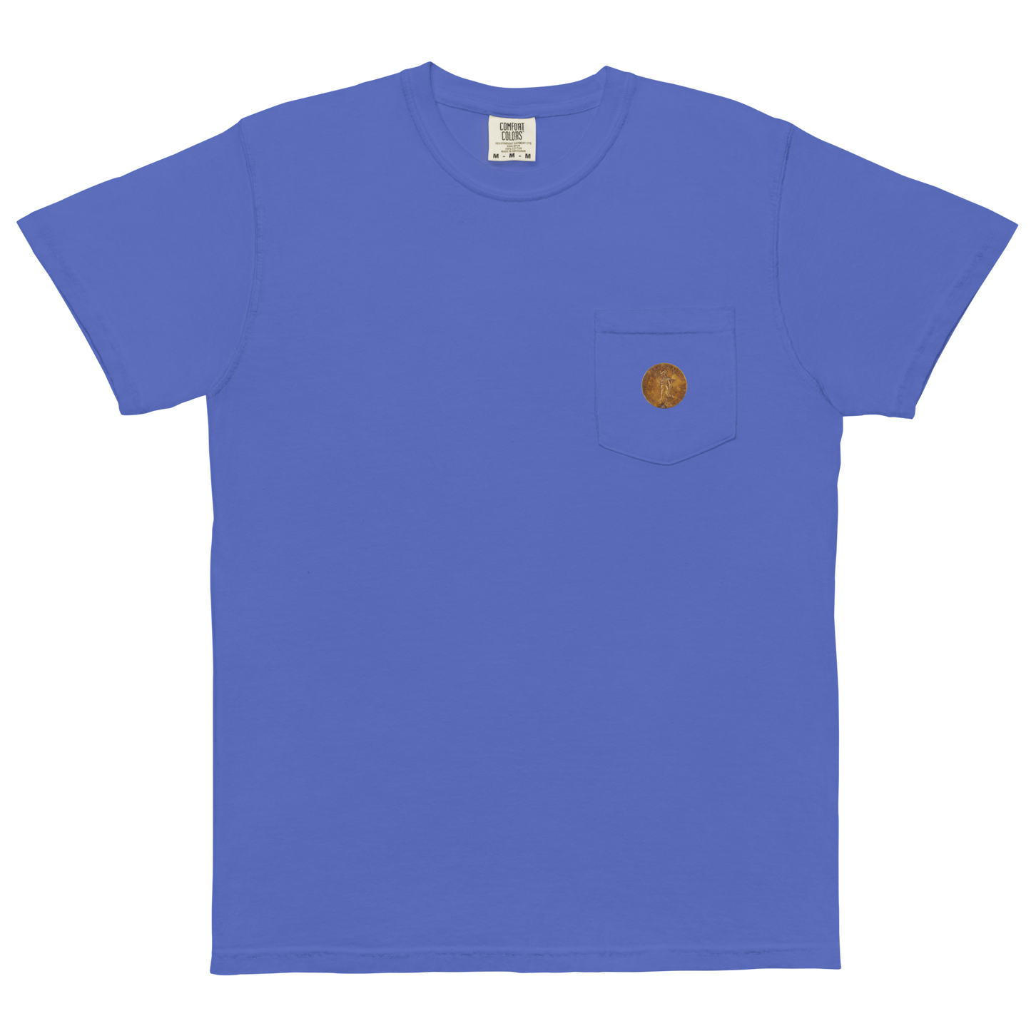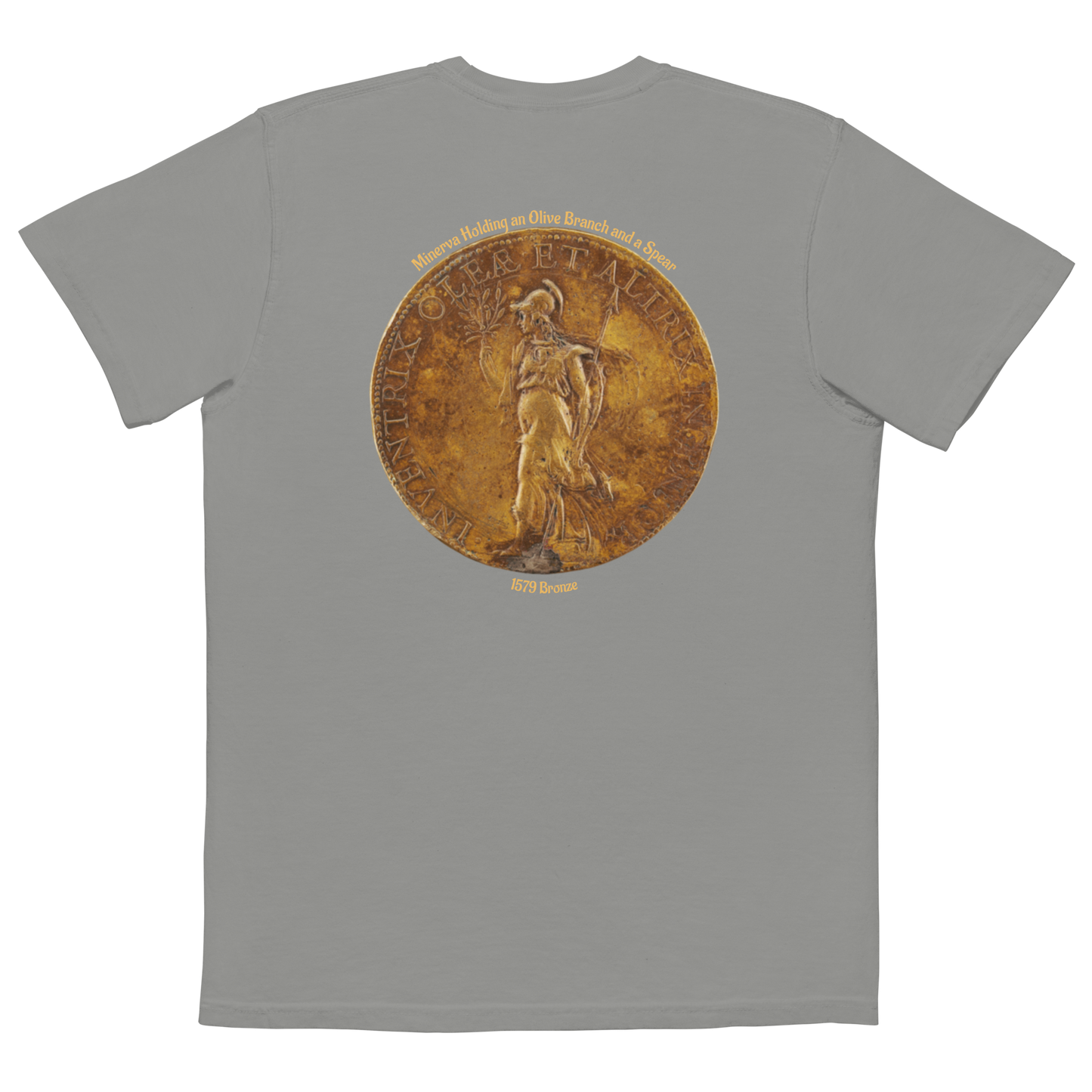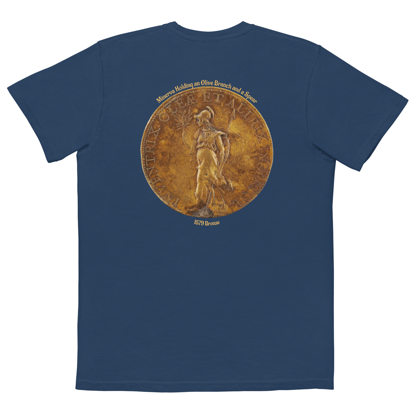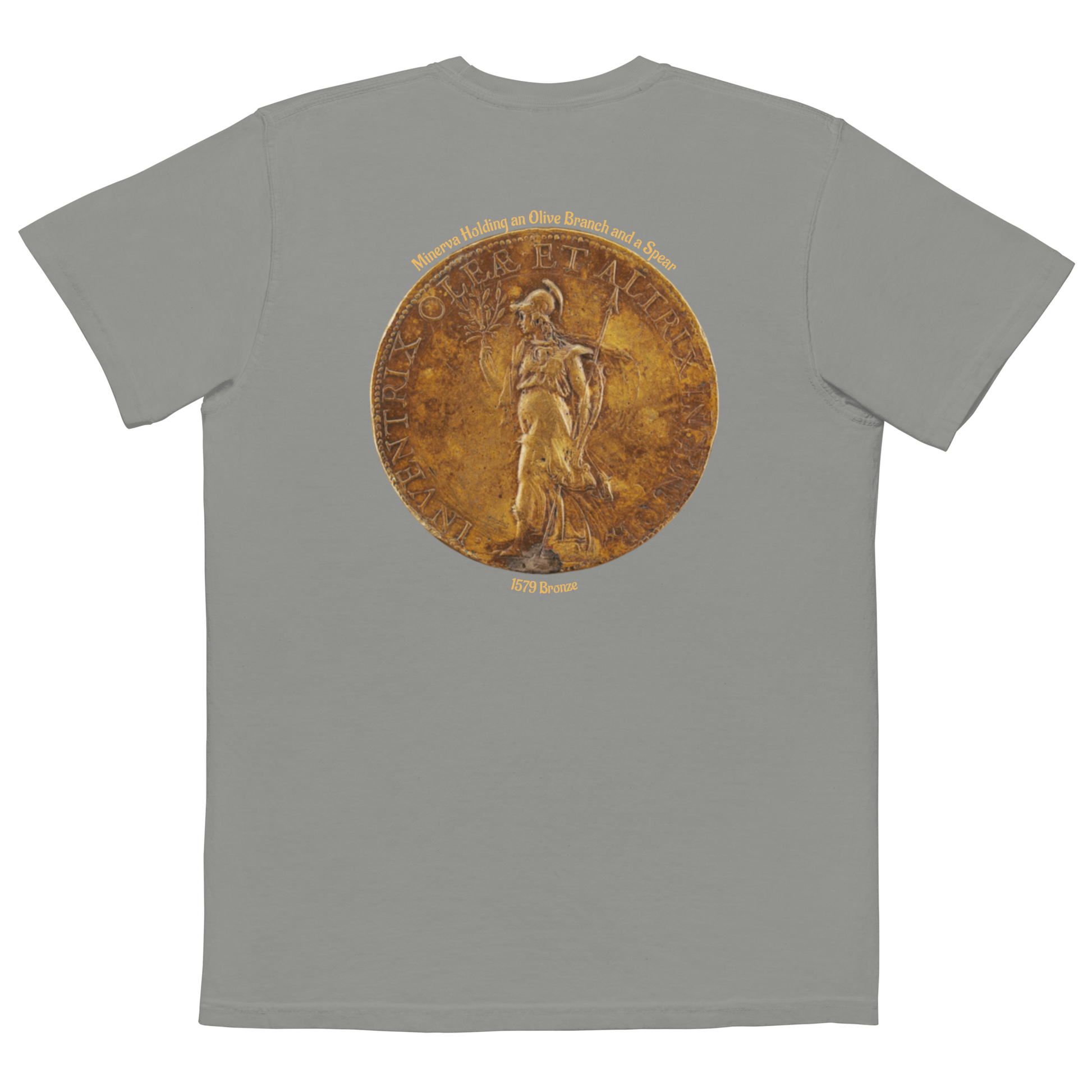 MEN'S POCKET T-SHIRT - Minerva Holding an Olive Branch and a Spear, 1579 Bronze