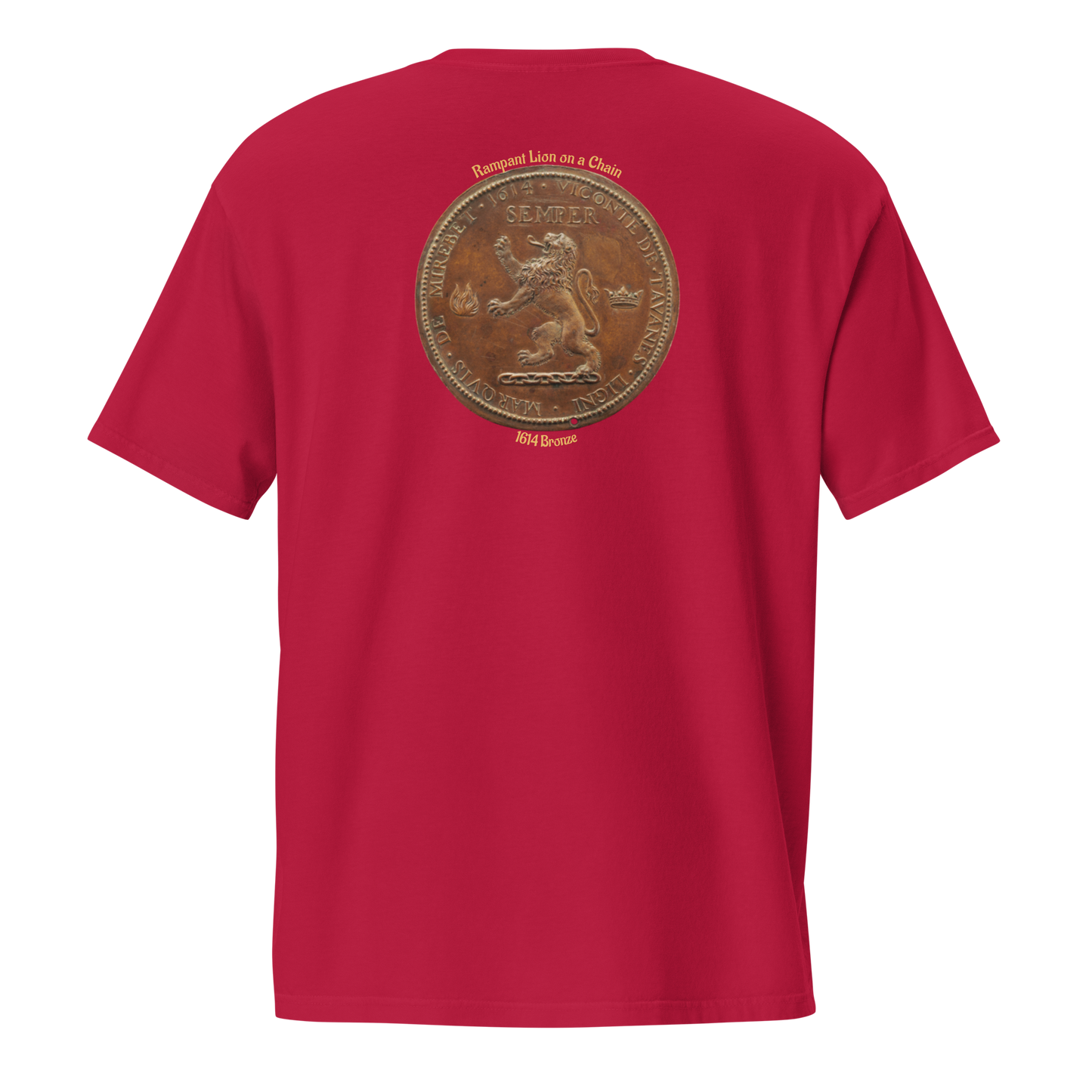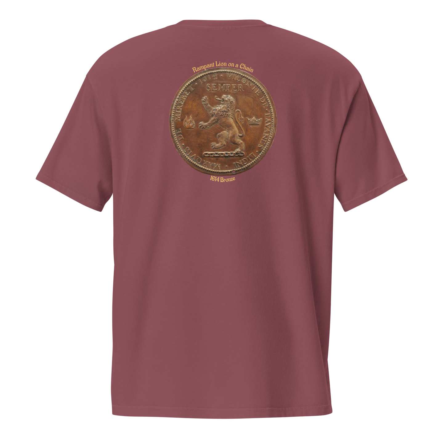 MEN'S POCKET T-SHIRT - Rampant Lion on a Chain, 1614 Bronze