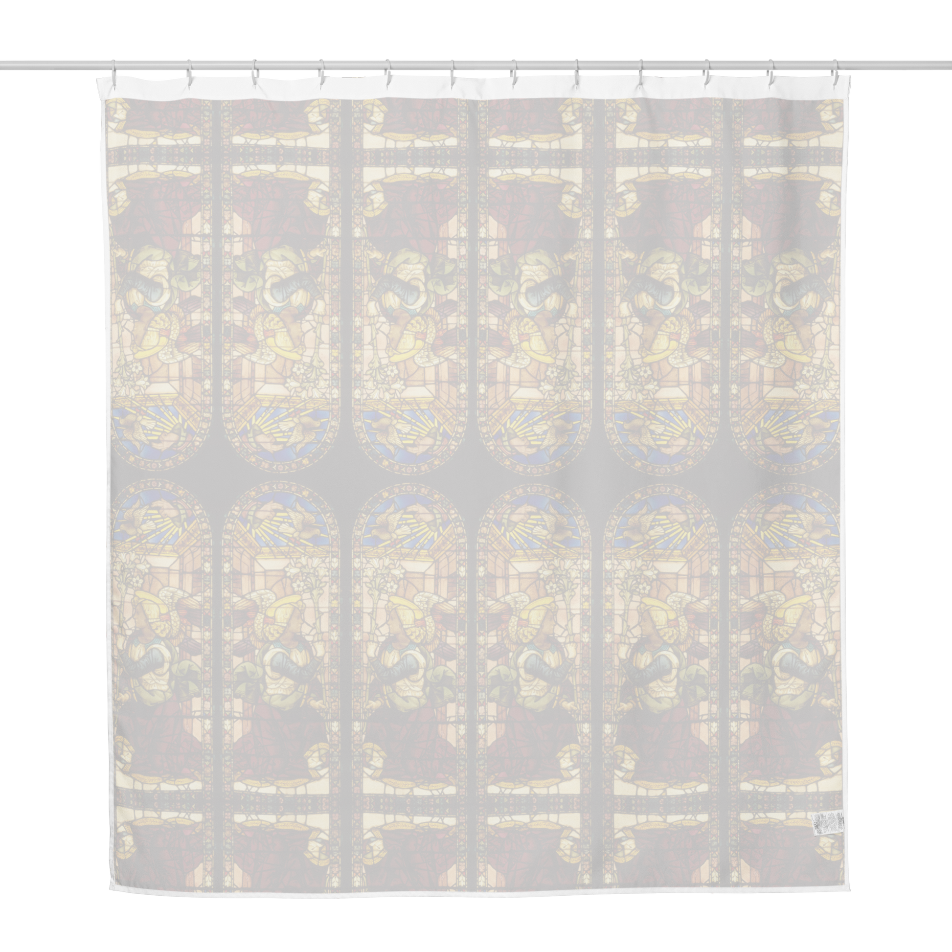 Elevate your bathroom with this exquisite luxury shower curtain, inspired by the timeless stained glass masterpiece "The Angel of the Annunciation" that was created in the year 1498.