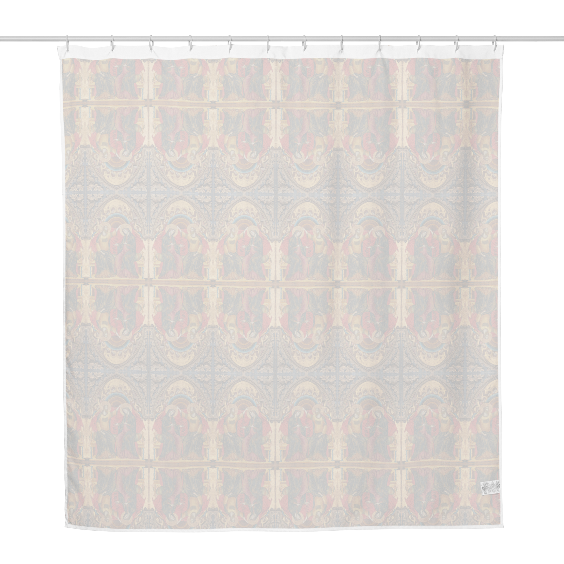 This exclusive shower curtain features a design inspired by the 1324 Renaissance era masterpiece titled "The Coronation of the Virgin."